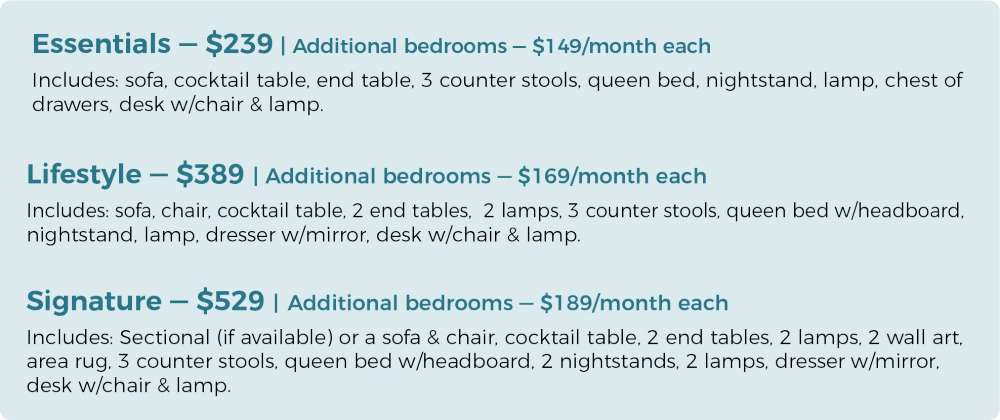 Submitting this form does not obligate you to rent furniture. A Furniture Options team member will confirm pricing, availability, and delivery details, then email you the final quote. Once everything looks good and you're ready to proceed with your furniture rental, you'll need to submit the Experian Credit Application.