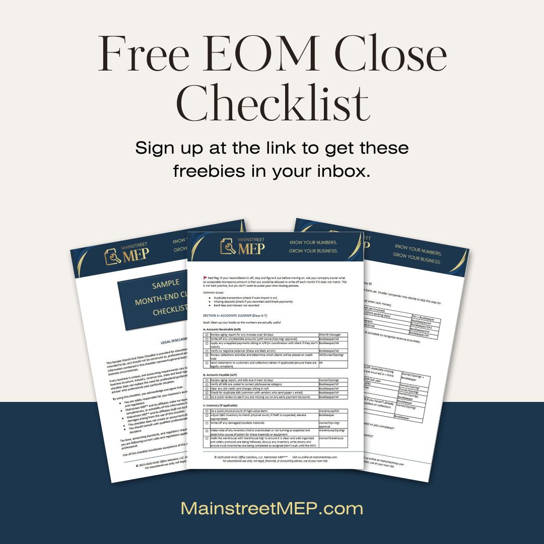 We're giving away our proven End of Month Close Checklist - the same process we use with MEP clients doing $500K to $20M in revenue