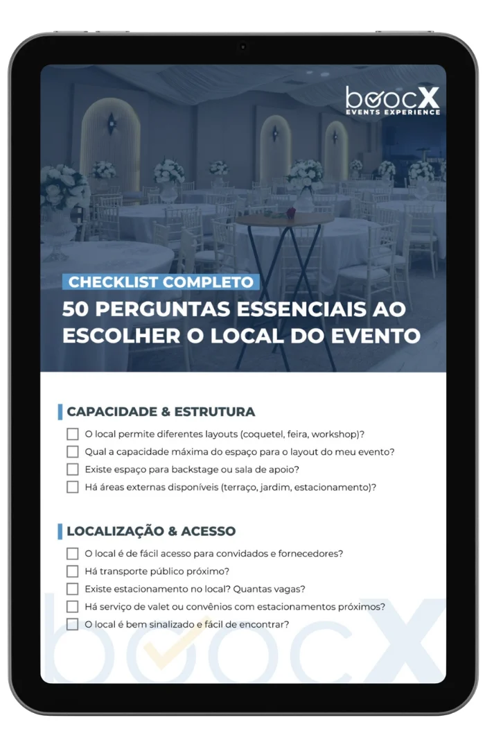 Quer garantir o sucesso do seu evento? Baixe agora o nosso checklist completo com 50 perguntas essenciais para escolher o local perfeito!