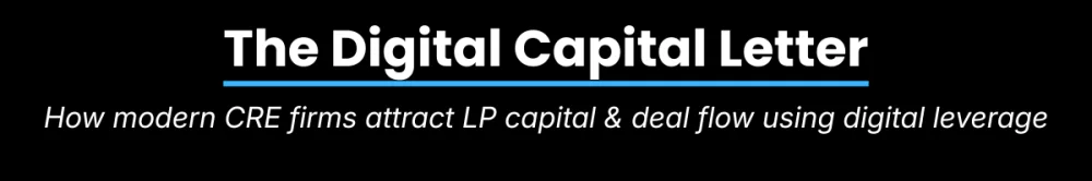 Subscribe to the newsletter for CRE operators serious about raising capital with modern strategies. From the team behind $50M raised, 70 brands built, and 200M+ content impressions for commercial real estate firms.