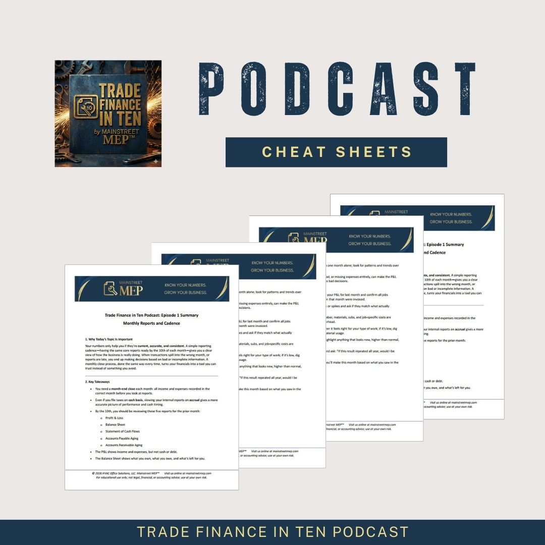 In this first episode of Trade Finance in Ten, we lay the foundation for running a trade business with control instead of chaos. You’ll learn why reviewing your numbers on a consistent monthly cadence matters more than chasing perfection, why the five core financial reports only work if the books are properly closed, and why the 10th of the month is a realistic line in the sand for most contractors.
