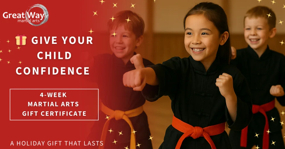 Our 4-Week Holiday Martial Arts Gift Certificate is designed to help kids 5–11 & teens 12-16 grow stronger — inside and out.