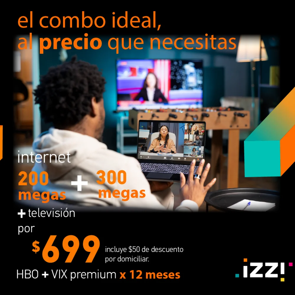 Plan $699 internet 200 megas + 300 megas + Televisión