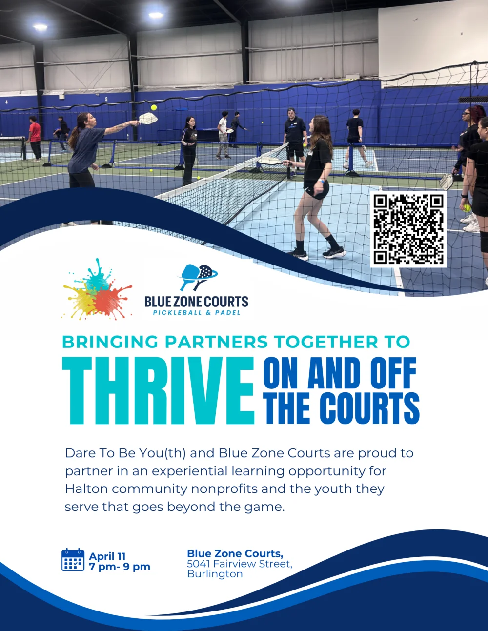 Join us on Saturday, April 11 from 7-9:30 PM at BlueZone Courts Burlington (5041 Fairview Street, Burlington) for a hands-on event focused on connection, movement, and shared experience through racquet sports.