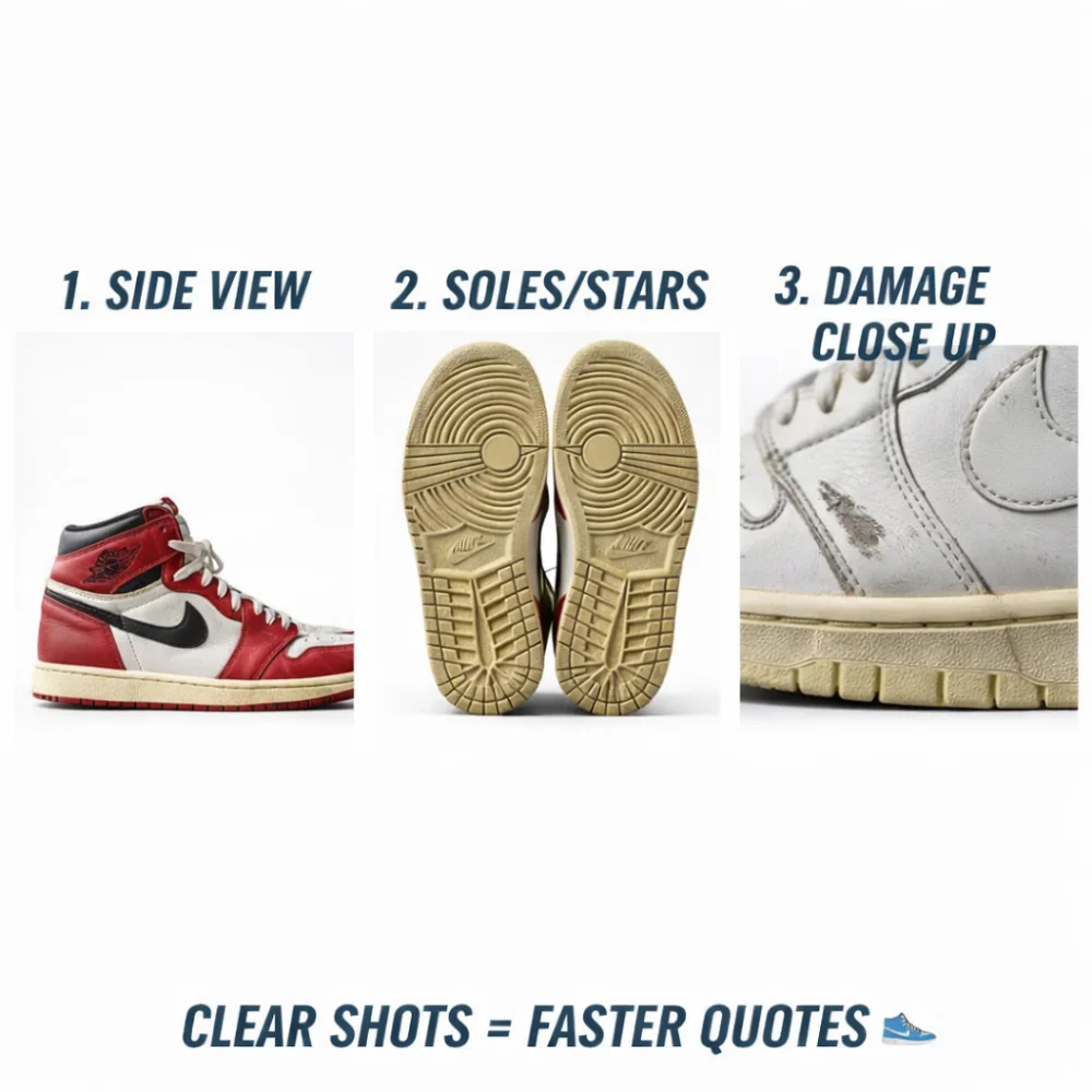 I understand that results depend on the shoe's original state. For vintage pairs (7+ years), if structural issues arise, the @kicksfixkilla team will pause work and consult me with alternative solutions before proceeding. Your kicks are in good hands. [View Full Terms]